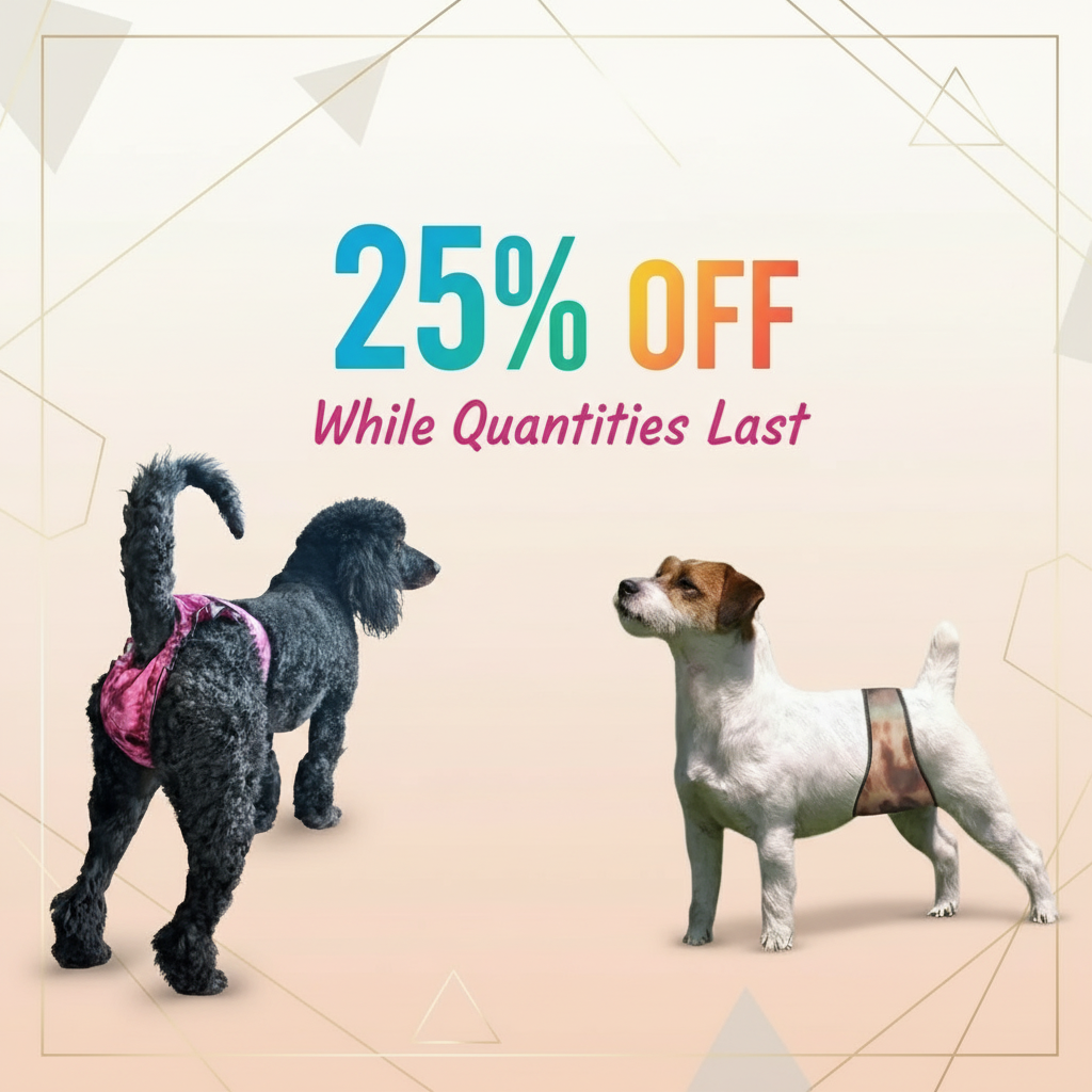 View CollectionSave 25% on select styles while quantities last! Shop our clearance collection featuring premium dog diapers, belly bands, in limited-stock prints and styles.